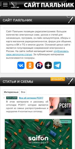 ПАЯЛЬНИК - все для радиолюбителя: статьи и конструкции, обучающие материалы, программы, форум, вопросы-ответы. Обзоры и карта радиолюбительских магазинов.